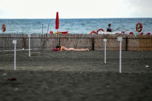 Una mujer toma el sol el 29 de mayo de 2020 en una playa de Ostia, al oeste de Roma afp_tickers