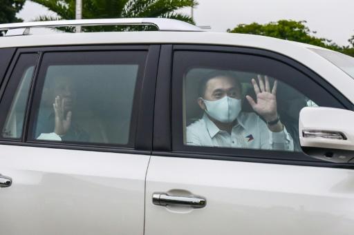El presidente de Filipnas, Rodrigo Duterte (izq.), y el senador Christopher Lawrence "Bong" Go, a bordo de un vehículo el 2 de octubre de 2021 en Manila afp_tickers