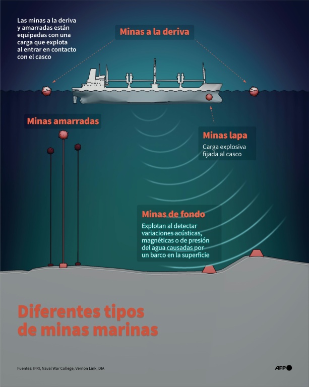Irán impuso el jueves rutas alternativas para los buques que transitan por el estrecho, alegando el riesgo de minas marinas en la ruta habitual, más alejada de sus costas.