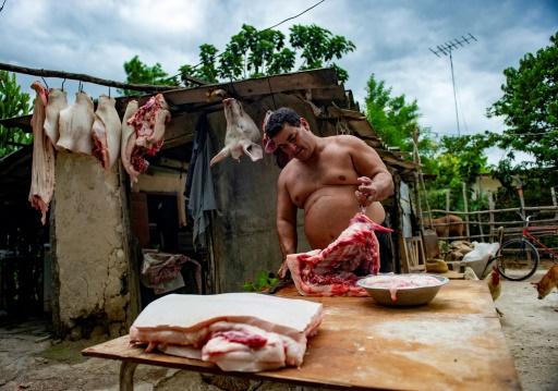 Un agricultor faena un cerdo en Jiguani, provincia de Granma, Cuba, el 19 de diciembre de 2021 afp_tickers