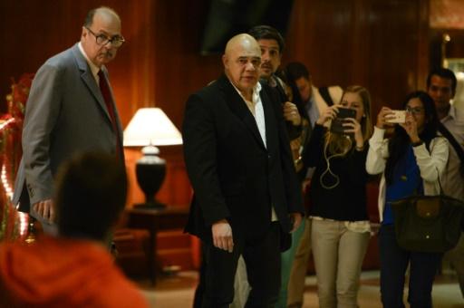 El secretario ejecutivo de la coalición opositora Mesa de la Unidad Democrática (MUD), Jesús Torrealba (c), se marcha de una reunión con los representantes del Vaticano y la UNASUR el 6 de diciembre de 2016 en Caracas afp_tickers