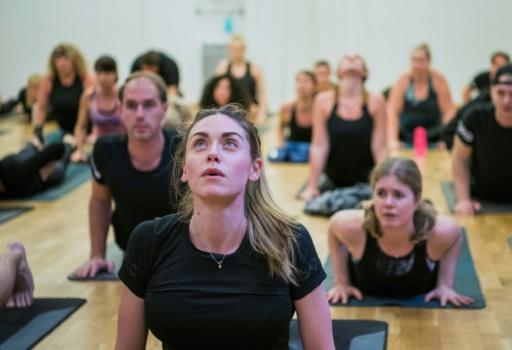 Con las mejillas rojas y una sonrisa en los labios, unos 60 empleados se dirigen al vestuario, visiblemente satisfecho, tras participar en una clase de yoga.
