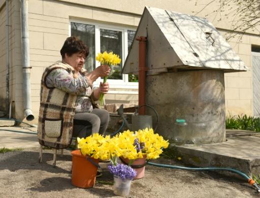 La mayoría de los días Ivanna Kuziv recoge flores de sus jardín y las pone en una cubeta para venderlas en la ciudad afp_tickers
