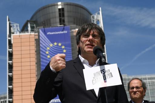 Carles Puigdemont habla durante una rueda de prensa que dio frente a la sede de la Comisión Europea, junto al presidente catalán, Quim Torra, el pasado 24 de mayo en Bruselas afp_tickers