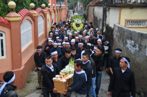 Miembros de la familia llevan el féretro con los restos de Hoang Van Tiep para el servicio fúnebre en el distrito de Dien Chau, provincia de Nghe An, el 28 de noviembre de 2019 afp_tickers