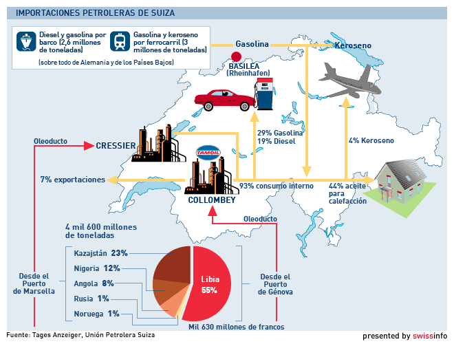 Libia es un importante socio comercial y abastece el 20% del consumo suizo de petróleo. Es uno de los cinco principales mercados de Suiza en África.