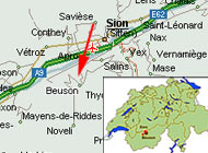 La localización en el mapa de Suiza de Beuson, escenario de la tragedia. Karte von Beuson Sion
