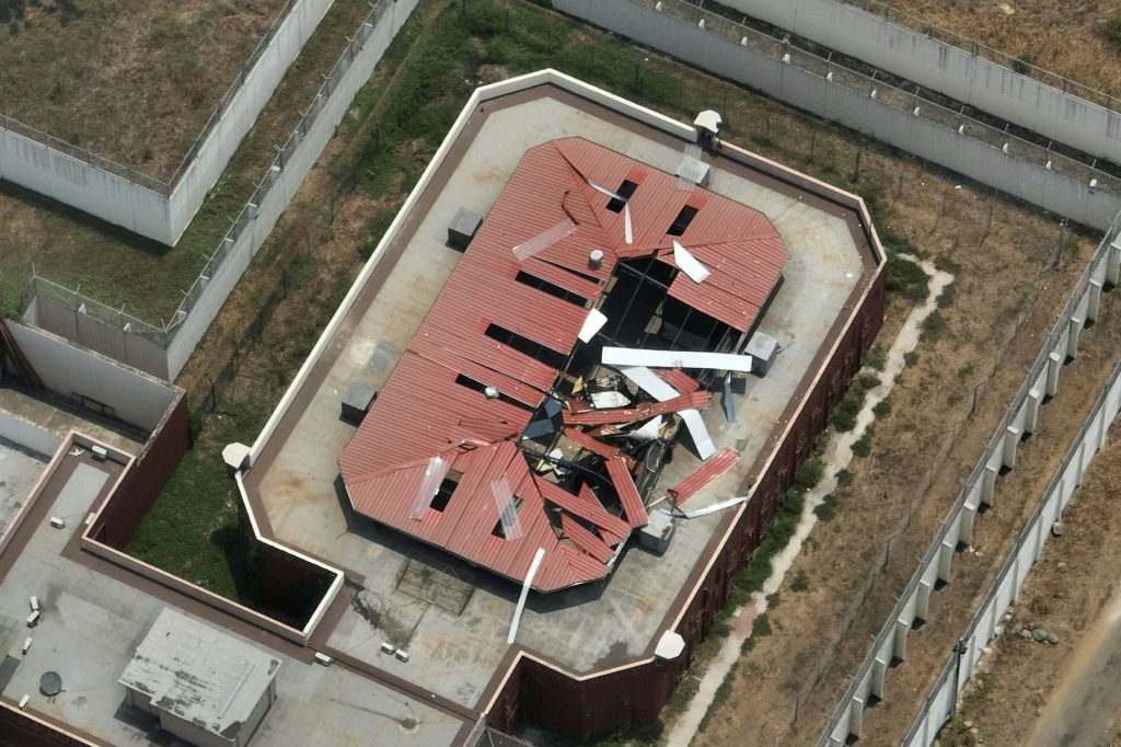 El aparato, que estaba posado sobre la cubierta roja del reclusorio, estalló destruyendo parte del techo, según imágenes aéreas de la AFP.