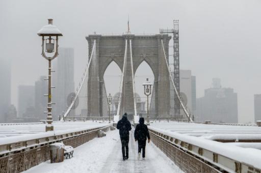 En Nueva York, el puente de Brooklyn y el Times Square estaban cubiertos por una capa de unos 10 centímetros de nieve, llevando un silencio poco usual a la metrópoli de nueve millones de habitantes.