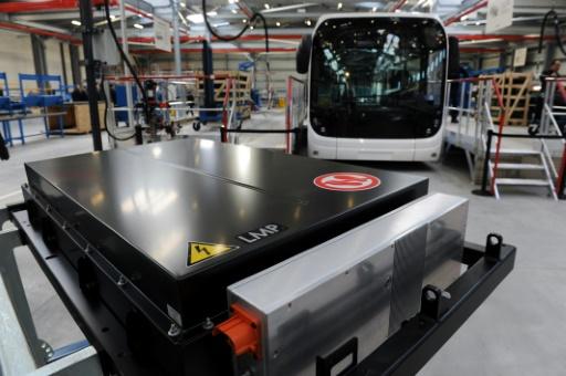 Batería de litio de un autobus eléctrico para el servicio público en una planta de ensamblado en Francia el 15 de enero de 2016 afp_tickers