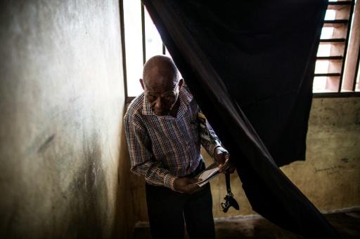 Un votante gabonés sale de la cabina donde eligió su candidato a presidente del país, el 27 de agosto de 2016 en Libreville afp_tickers