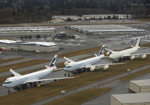 Aviones Boeing 747 en producción para Cathay Pacific Cargo en las plantas de producción de Boeing en Paine Field, Everett, Washington, el 17 de febrero de 2012 afp_tickers