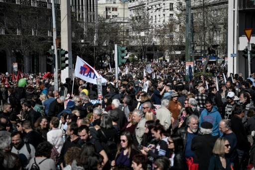 Miles de griegos protestaron el martes contra un proyecto de reforma del sistema de pensiones que prolonga, según el sindicato de funcionarios, los recortes que sufrieron durante la crisis, hace casi una década.