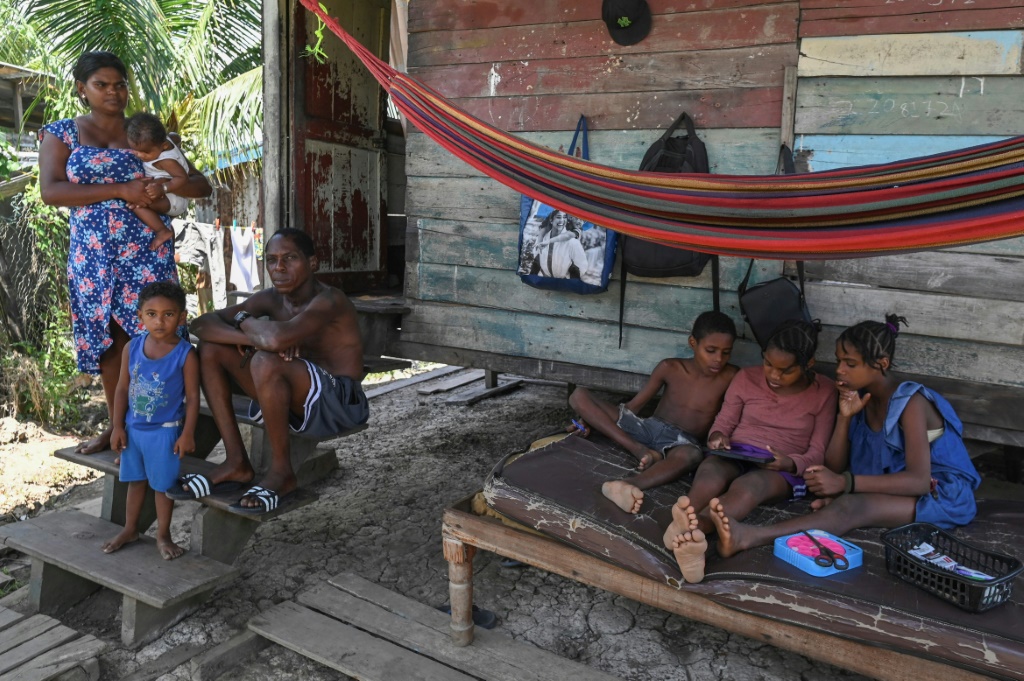 Shaun Ferrier, de 52 años, su esposa Naomi y sus cinco hijos viven en una casucha de madera que él mismo construyó en un terreno que no le pertenece en el barrio Chateau Margot, ubicado en el margen de una carretera que conduce a Georgetown, la capital, y un canal que almacena aguas de lluvia donde suelen lavar su ropa.
