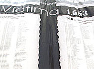 Un listado de las víctimas de la violencia en Colombia, colocado frente al Congreso en Bogotá. Keystone
