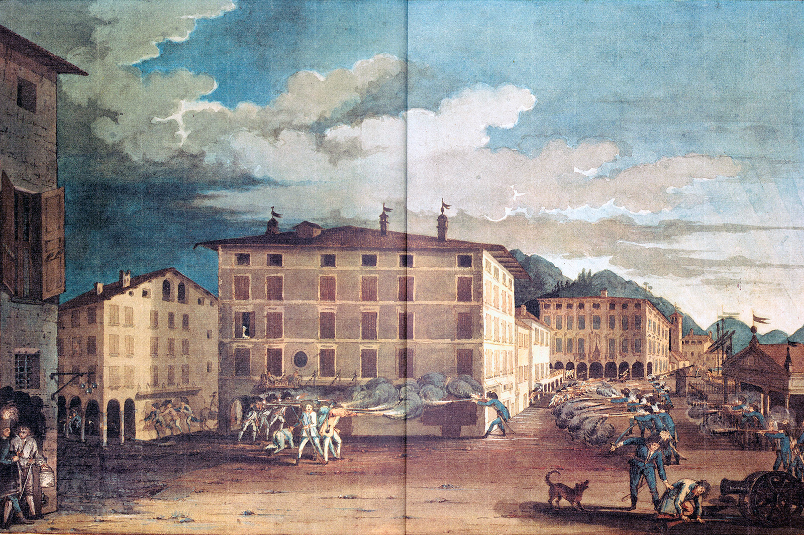 En el verano de 1798, la intervención militar francesa transformó a la antigua Confederación en un Estado unitario centralizado según el modelo francés. Los generales franceses querían unir los antiguos estados súbditos de los Alpes del Sur en un solo cantón, pero no lo lograron. Se crearon precipitadamente dos cantones, Lugano y Bellinzona, como resultado de las profundas diferencias locales y las fuertes demandas de autonomía.
