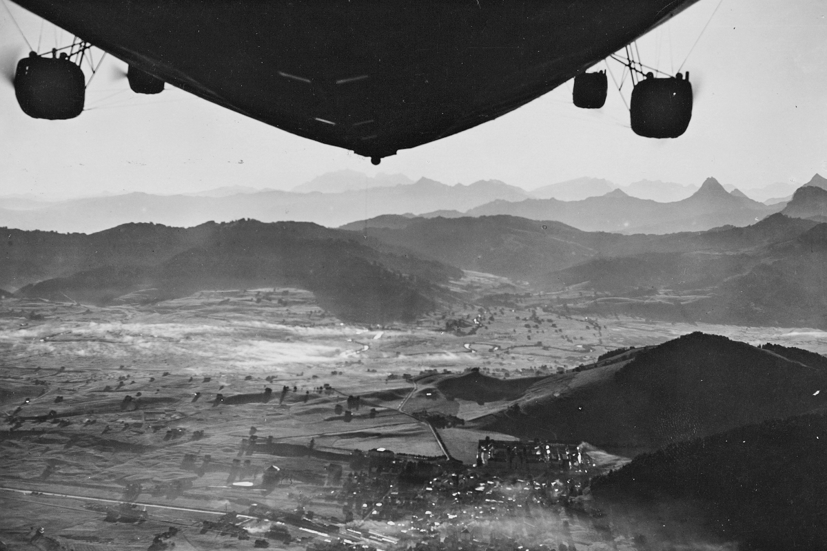Los zepelines, verdaderos barcos voladores, grandes y rígidos, fueron un medio de transporte tan peligroso como fascinante. Entre 1929 y 1934, uno de los más grandes de estos dirigibles, el Graf Zeppelin, realizó más de 70 excursiones de un día en Suiza, entre sus viajes de larga distancia. Este gigante de los aires atraía a la gente como un imán.
