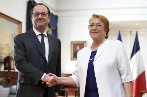La presidenta de Chile, Michelle Bachelet, recibe a su homólogo francés, François Hollande, en Santiago, el 21 de enero de 2017 afp_tickers