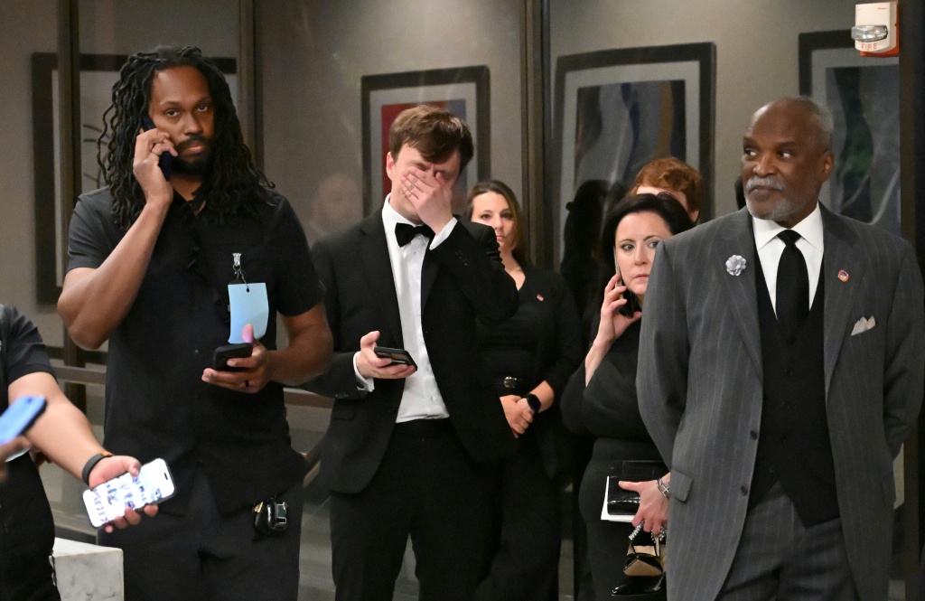 En un video de la AFP, se puede ver a Trump sentado en la mesa de honor, con, entre otros, el vicepresidente, JD Vance, y su portavoz, Karoline Leavitt, mientras resuenan golpes sordos que inicialmente no provocan ninguna reacción. Trump dijo más tarde que pensó que era una bandeja se caía pero después se dio cuenta de que eran disparos.