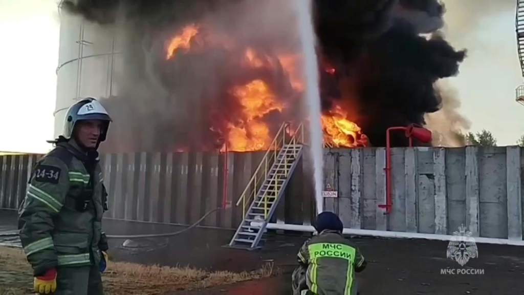 Incendio en una refinería de petróleo en Rusia tras un ataque con drones ucranianos