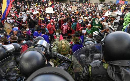 En Quito la mayoría de marchas son pacíficas, pero en las noches estallan los disturbios y los choques con la fuerza pública. Unos 10.000 indígenas venidos de sus territorios protestan desde el lunes en la capital, de tres millones de habitantes.