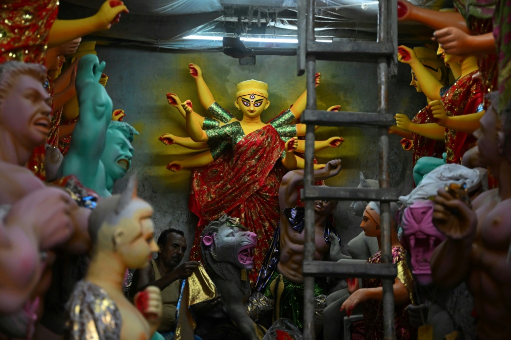 Los festejos, que duran una semana, celebran la victoria de Durga –una poderosa diosa de múltiples brazos a la que a menudo se representa montada sobre un león y es venerada como madre protectora– contra un demonio.