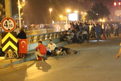 La gente se pone a cubierto en Ankara, en medio de una manifestación contra el anuncio de un grupo de militares que afirmó haber tomado el poder en Turquía, el 15 de julio de 2016 afp_tickers