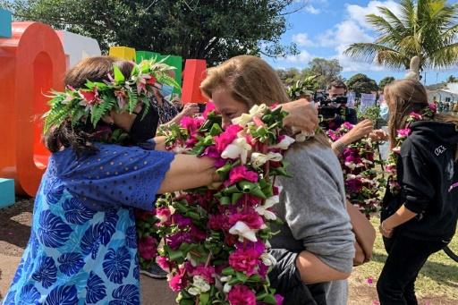 Vestidos con sus típicos trajes polinésicos y coronas de flores, reiniciaron una de sus mayores tradiciones: uno a uno, les fueron colocando sobre el cuello a los pasajeros collares de buganvilias y hojas verdes, una costumbre que representa un gesto de cariño para los visitantes.