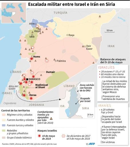 El jueves Israel afirmó haber atacado posiciones «iraníes» en la vecina Siria en represalia por ataques lanzados por Irán desde territorio sirio -dijo- contra la parte de los Altos del Golán ocupada por el Estado hebreo.