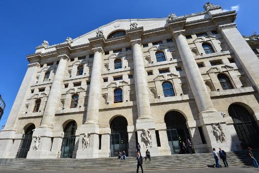 Exterior de la Bolsa de Milán, en esta ciudad del norte de Italia, el 23 de mayo de 2013. Italia volvió a sumirse en la recesión con una contracción del PIB del 0,2% en el segundo trimestre afp_tickers