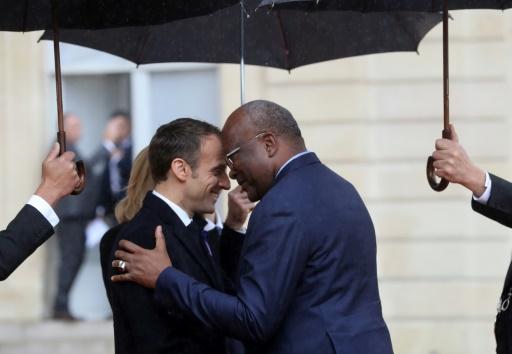 El presidente francés, Emmanuel Macron (izq), da la bienvenida a su homólogo de Burkina Faso, Roch Marc Christian Kabore, en el Palacio del Elíseo parisino el 11 de noviembre de 2018 afp_tickers