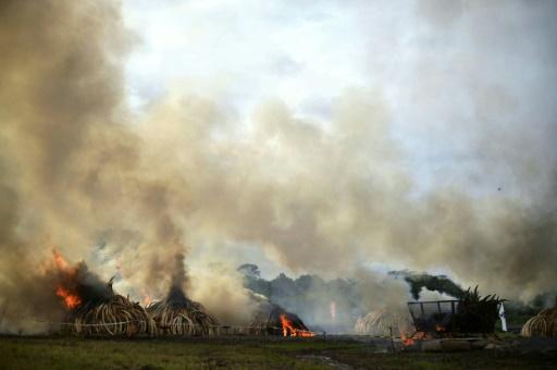 El presidente de Kenia prendió fuego el sábado a 105 toneladas de marfil en el parque nacional de Nairobi, la mayor cantidad de «oro blanco» jamás incinerado en una sola vez, un acto simbólico para luchar contra la caza furtiva de los elefantes.