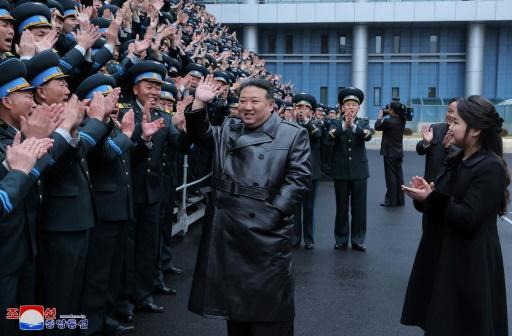 En las imágenes difundidas por Pyongyang, Kim, acompañado por su hija Ju Ae, felicita a los científicos y los programadores de la Administración Nacional de Tecnología Aeroespacial.