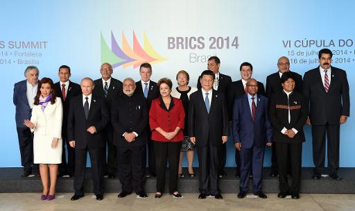 Los jefes de Estado de los países BRICS con los sudamericanos en Brasilia el 16 de julio de 2014 afp_tickers