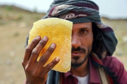 Un apicultor yemenita muestra un panal de abejas en Taez el 28 de junio de 2022 afp_tickers
