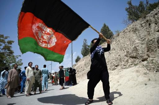 Un hombre afgano sostiene una bandera nacional afgana, el día de la independencia del país, en Kabul, el 19 de agosto de 2021 afp_tickers