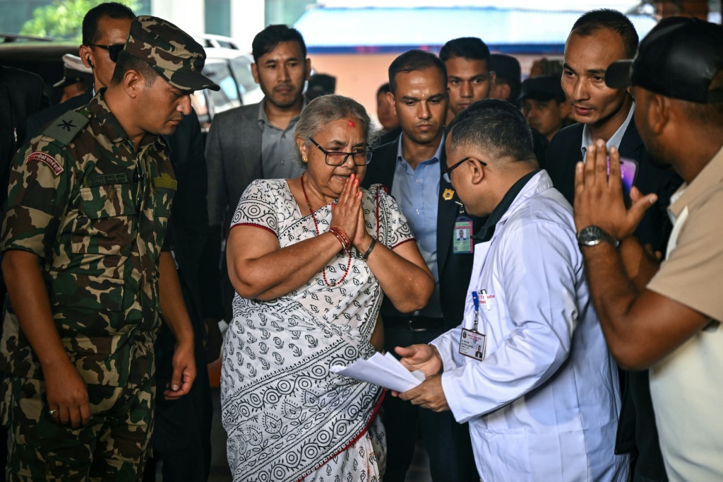 La mandataria, de 73 años, dedicó su primer salida este sábado a recorrer hospitales de la capital para visitar a los heridos de las protestas, víctimas de la represión ordenada por su precedesor, KP Sharma Oli.