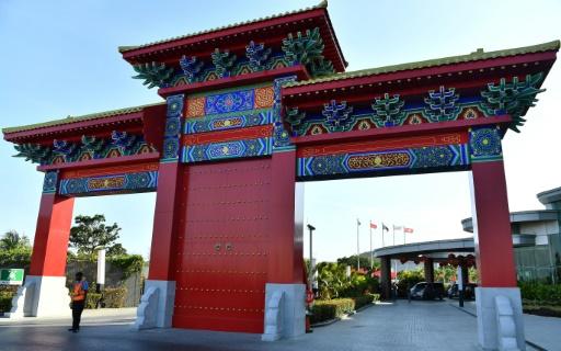 Frente al lujoso hotel Stanley, donde se alojará Xi Jinping y la delegación china, hay una pagoda acabada de construir rodeada de banderas rojas, pensada como un símbolo de la amistad con China.