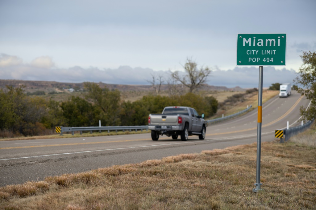 Miami, la única ciudad del condado de Roberts, se escribe igual a la famosa de Florida pero se pronuncia con un sonido de «ah» al final, aclara Rick Tennant, un amable juez jubilado que suele jugar dominó con sus vecinos en su taller mecánico.