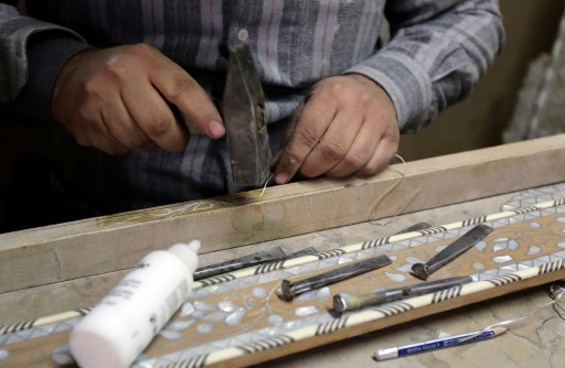 La marquetería tradicional consiste en la incrustación de nácar, marfil o hueso en la madera dibujando formas geométricas siguiendo la tradición árabe. «El costo de nuestra producción es elevado y el suministro de materias primas, difícil», añade.