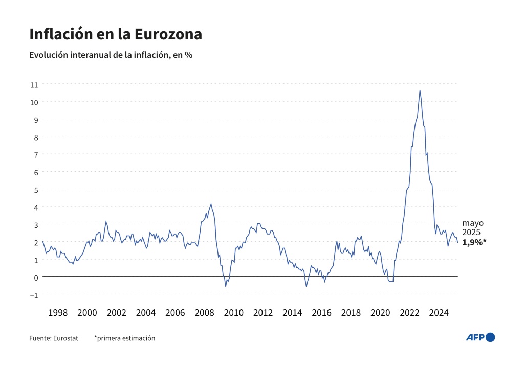 La inflación de la zona euro desaceleró claramente en mayo y llegó al 1,9% interanual, en su menor nivel desde el mes de septiembre del año pasado, y perfiló una tendencia de nuevos recortes este año.