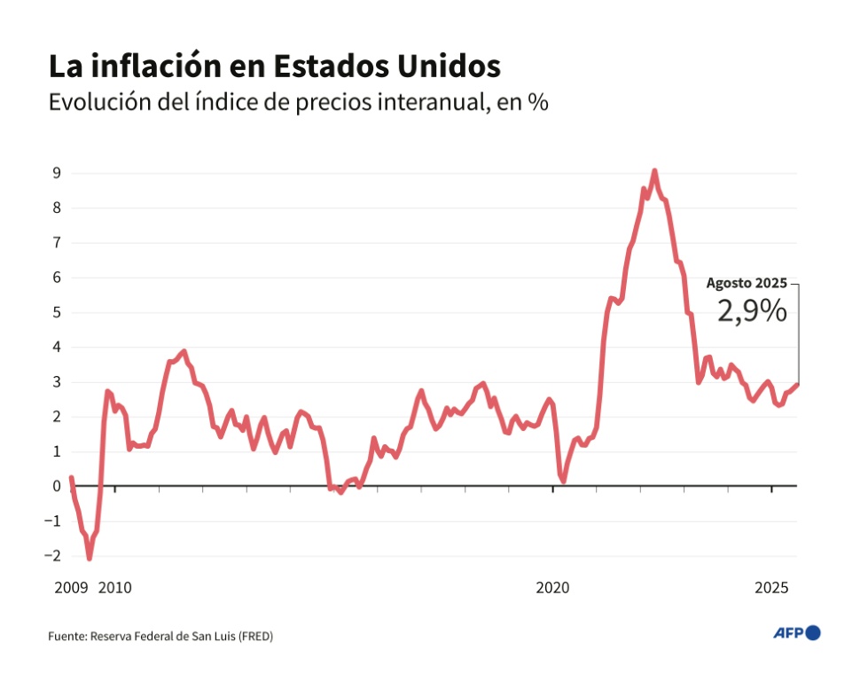 La inflación en Estados Unidos repuntó en agosto a 2,9% en 12 meses, su nivel más alto desde enero, según datos oficiales publicados el jueves, pero los analistas creen poco probable que este dato evite que la Reserva Federal recorte las tasas de interés.