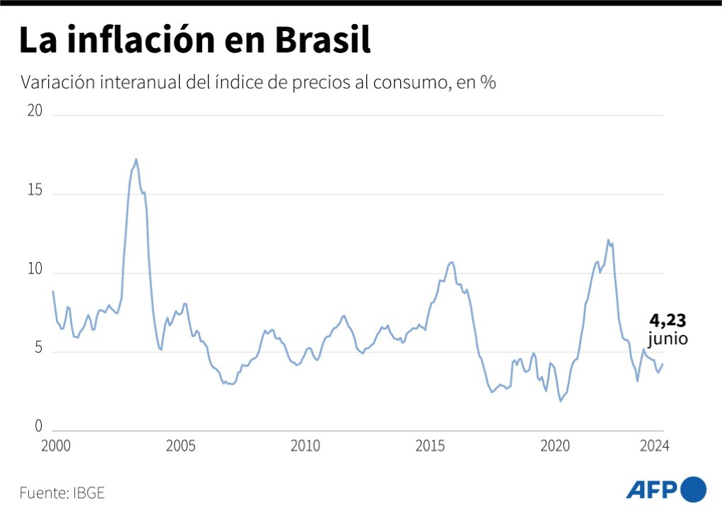 Para 2024, el gobierno del presidente Luiz Inácio Lula da Silva espera una inflación de 3,7%, de acuerdo con la última proyección difundida en mayo. El mercado, en cambio, espera un índice en 4,02%, según la encuesta Focus del Banco Central de Brasil (BCB) divulgada esta semana.