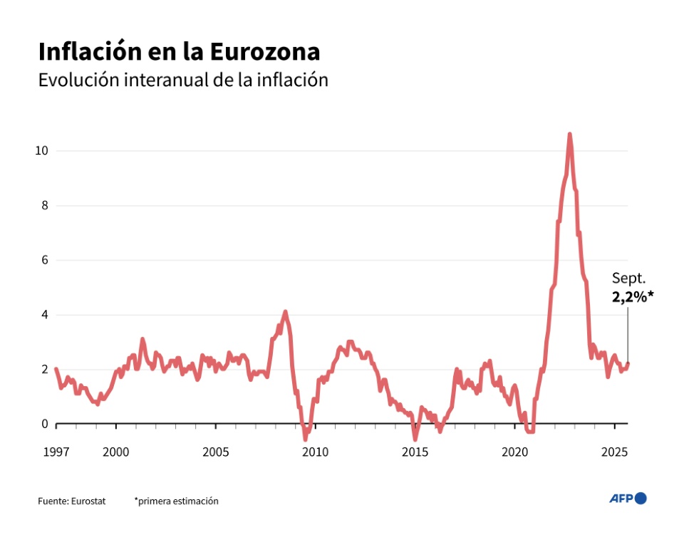 La inflación en la zona euro sube en septiembre a 2,2% interanual