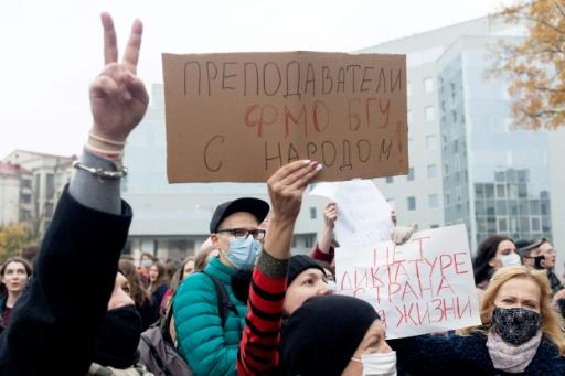 Según una periodista de la AFP, cerca de 2.500 manifestantes, en su mayoría estudiantes y jubilados, marcharon por la tarde por una de las principales arterias de la capital, coreando consignas contra Lukashenko y con banderas rojas y blancas, los colores de la oposición.