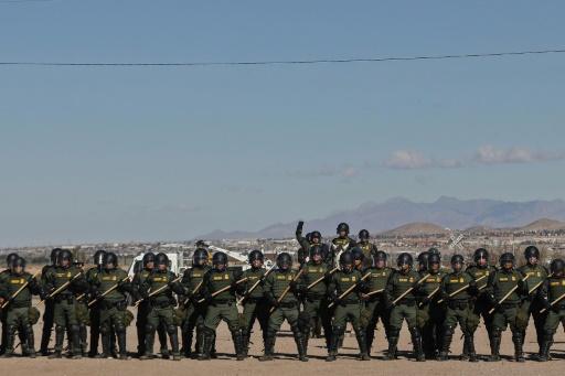 Agentes de la patrulla fronteriza estadounidense realizaron este viernes un simulacro de contención de migrantes en el muro fronterizo cercano a la localidad mexicana de Ciudad Juárez.