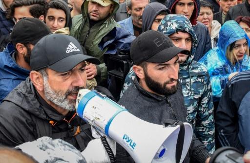El líder opositorio armenio Nikol Pachinian en una manifestación en el centro de Ereván el 21 de abril de 2018, tras varios días de protestas consecutivos contra la elección del primer ministro Serge Sarkissian afp_tickers