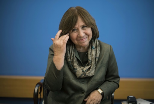 Lukashenko felicitó a la escritora tras el anuncio del premio, pese a que algunos de sus libros están prohibidos en el país y las autoridades impiden las apariciones en público de Alexievich.
