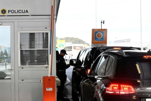 La policía eslovena revisa la documentación de los viajeros que cruzan el paso de Obrezje, fronterizo con Croacia, el 21 de octubre de 2023 afp_tickers