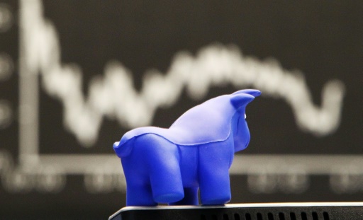 La figura de un toro, en una imagen tomada en la Bolsa de la ciudad alemana de Fráncfort el 30 de diciembre de 2015 afp_tickers